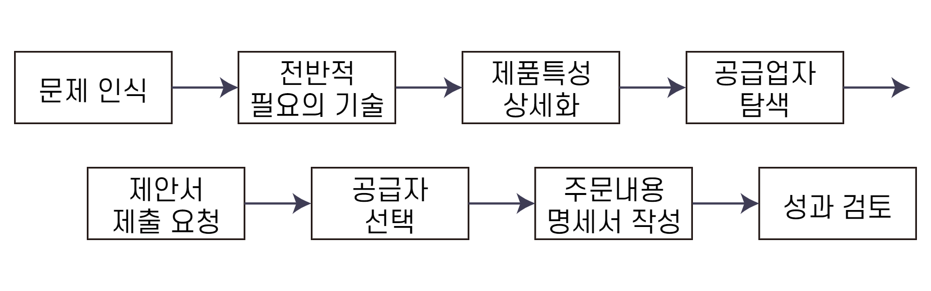 산업재 구매의사결정과정을 8단계로 나누어집니다. 신규 구매의 경우에는 위에서 나열한 8단계를 모두 거치는 것이 보통이지만, 순수 재구매나 변형된 재구매의 경우에는 8단계 중 몇몇 단계는 생략될 수 있을 것입니다.