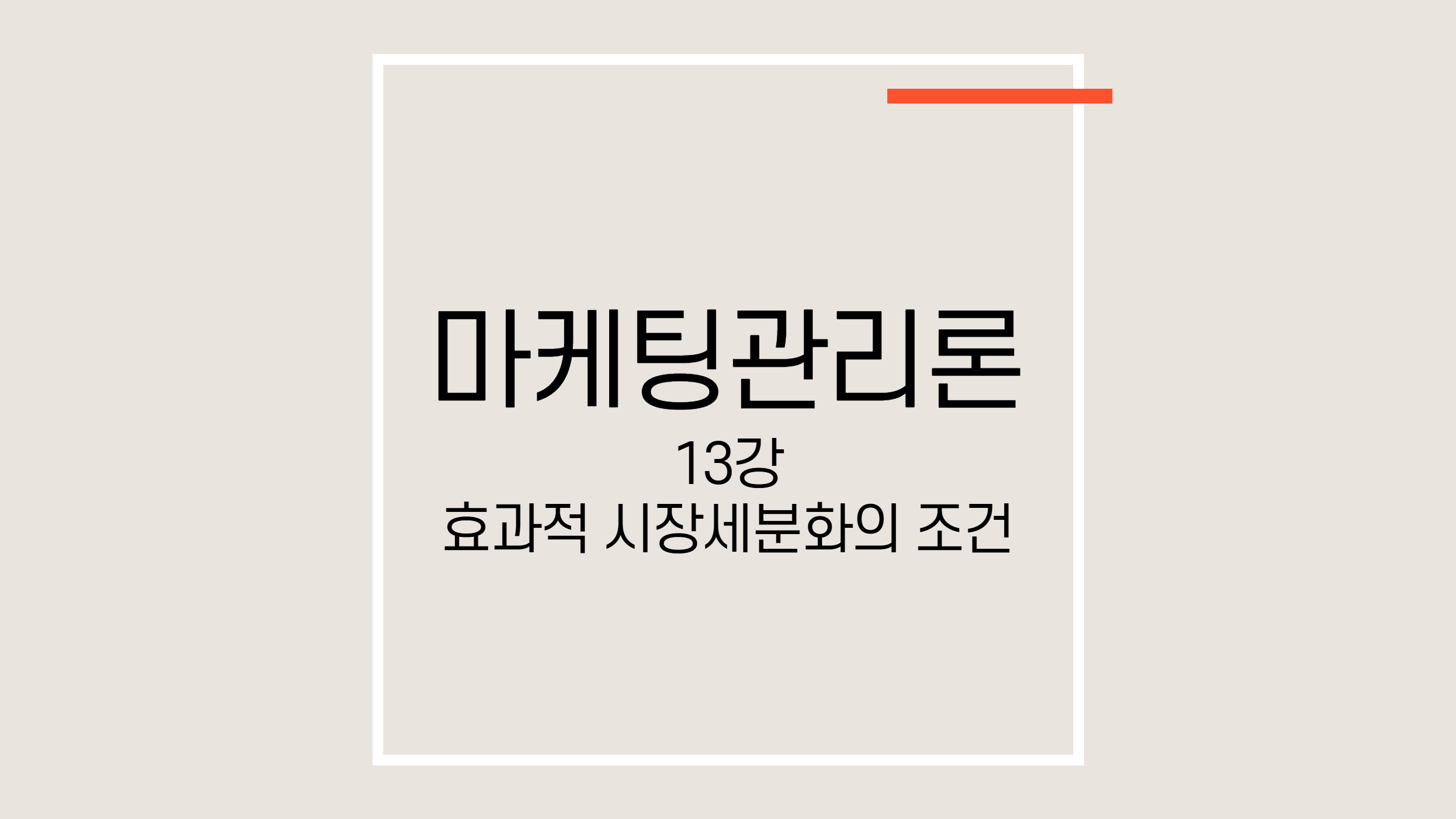 오늘은 효과적 시장세분화의 조건들에 대해 알아봤습니다. 다음 시간에는 표적시장 선택(targeting)에 대해 공부해보도록 하겠습니다. 오늘도 공대형아J였습니다. 감사합니다.