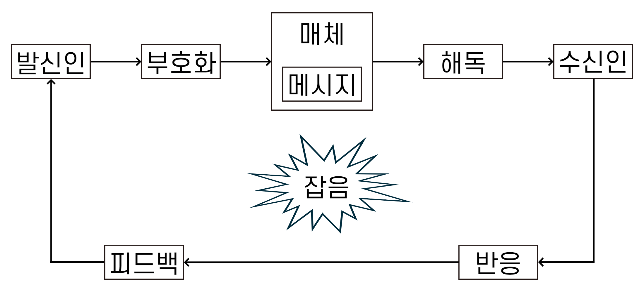 발신인이 보낸 메시지를 수신인이 받아서 해석하는 과정입니다.