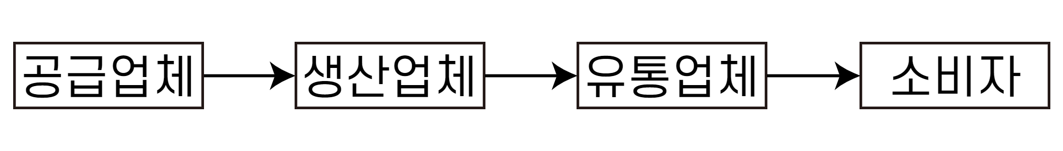 공급업체 -> 생산업체 -> 유통업체 -> 소비자
