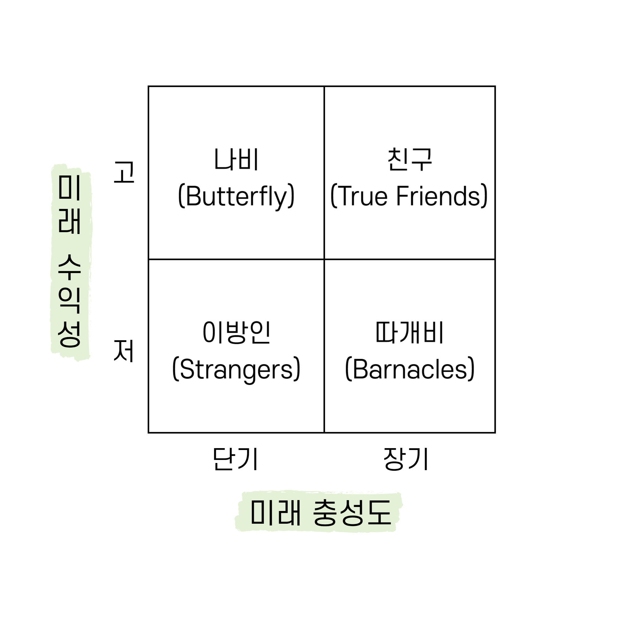 ・ 생애가치 : 친구 > 나비=따개비 > 이방인