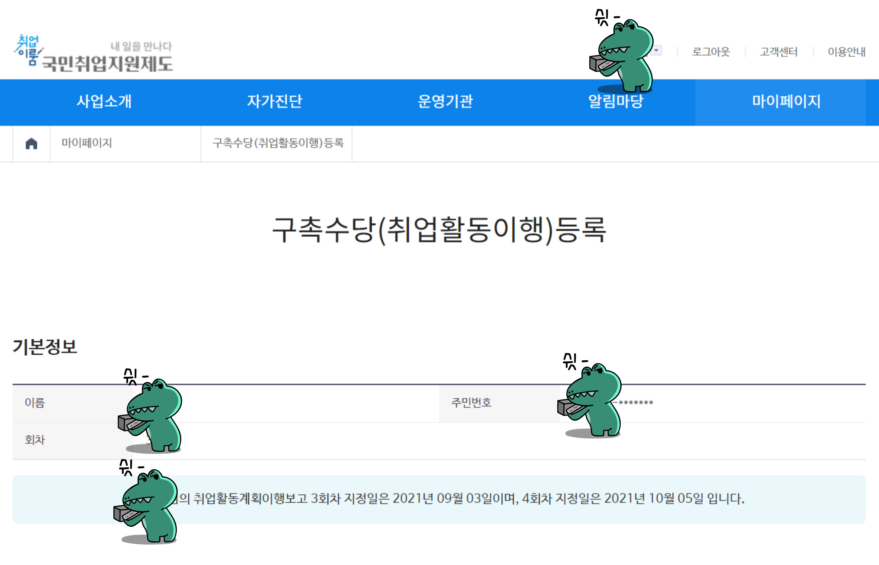 해당 회차를 클릭하시면 구직촉진수당을 신청하는 폼이 나옵니다.