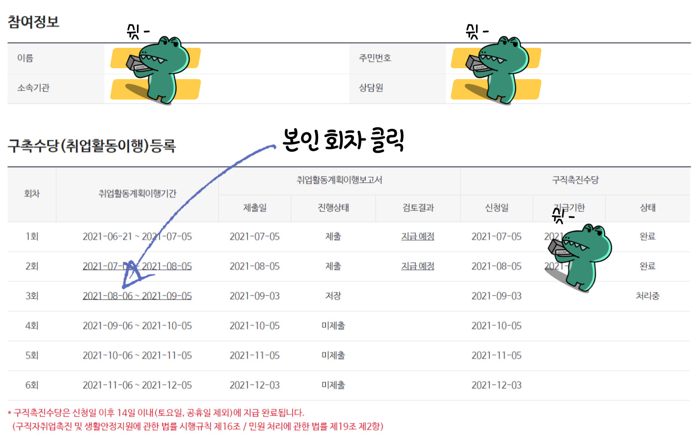 해당 회차를 클릭하시면 구직촉진수당을 신청하는 폼이 나옵니다.